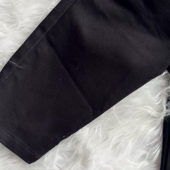 “Trendy kid’s co-ord set featuring a unique long- sleeve shirt with a half solid white design and half cartoon comic-print panel, paired with classic black trousers for a smart - casual look.”